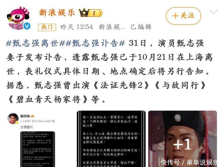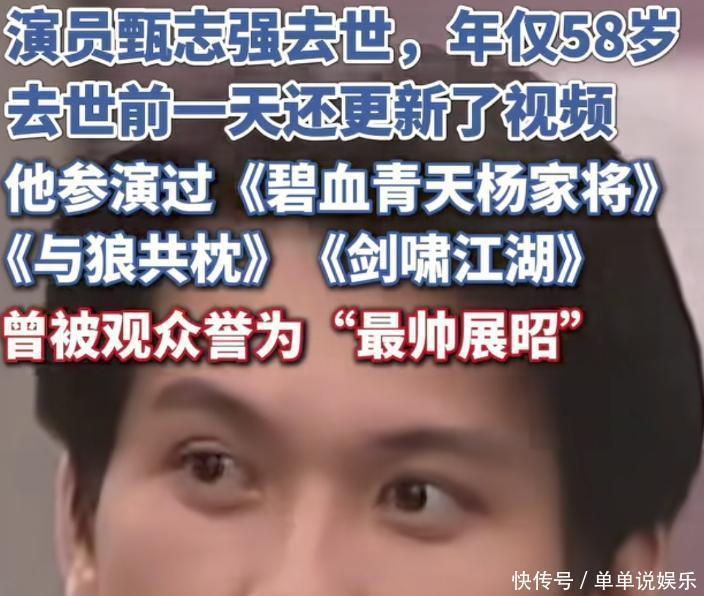 [免责声明]文章的时间、过程、图片均来自于网络,文章旨在传播正能量,均无低俗等不良引导,请观众勿对号入座,并上升到人身攻击等方面。观众理性看待本事件,切勿留下主观臆断的恶意评论,互联网不是法外之地。本文如若真实性存在争议、事件版权或图片侵权问题,请及时联系作者,我们将予以删除。信息来源:百度百科:甄志强太突然!他在上海去世,终年59岁……曾被誉为“最帅展昭”,去世前一天还在发视频.红星新闻.《大人,他来了》开机 港影星甄志强阔别十年复出|大人,他来了|甄志强|复出.新浪网.香港演员甄志强病逝,曾有“最帅展昭”之称.The Paper.“展昭”扮演者甄志强离世.鲁中晨报.